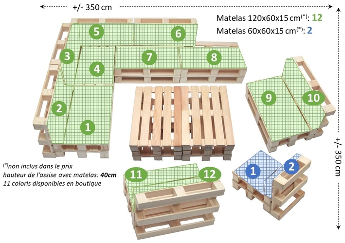 | Nombre de matelas 60X60x15cm | 2 |